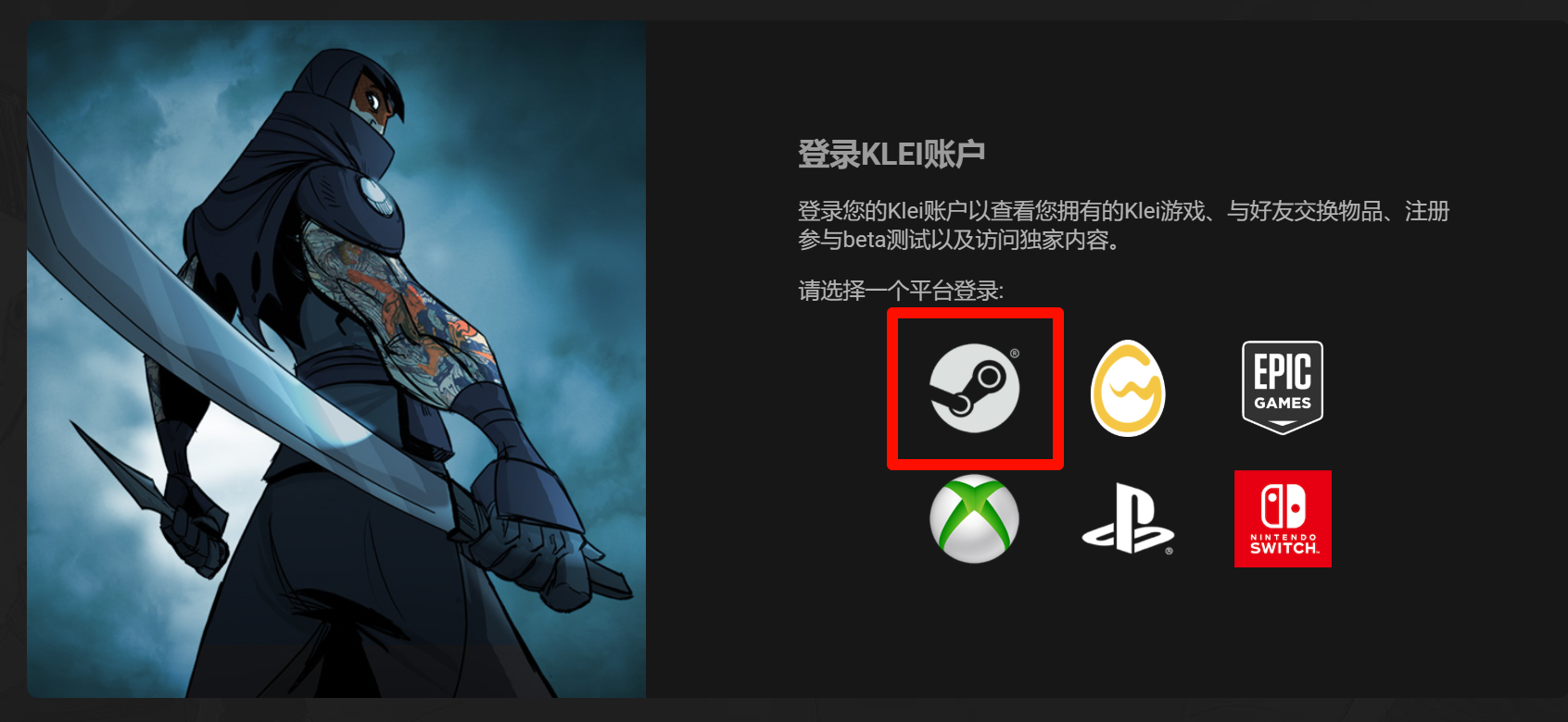 访问科雷官网:【https://accounts.klei.com/login】,使用steam账户登陆